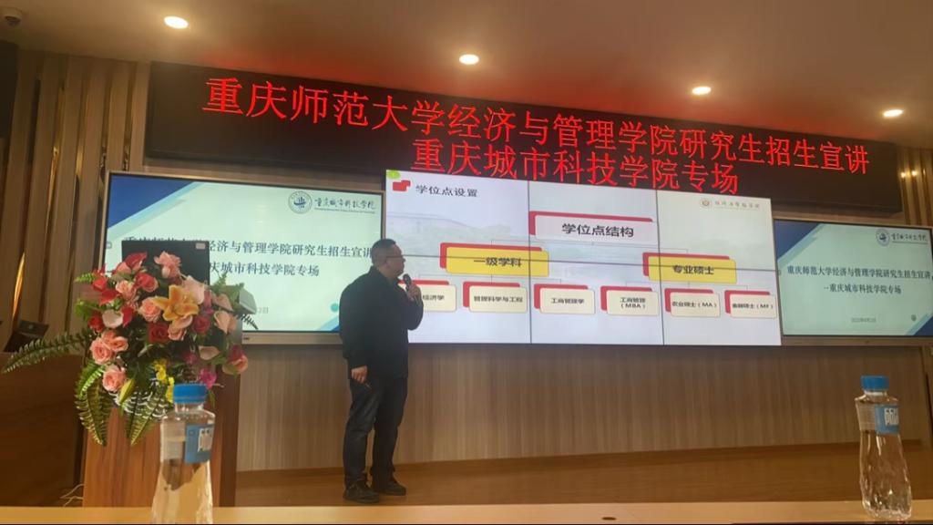 为进一步提高研究生生源质量和一志愿报考率,扩大我院三个一级学科的影响力,吸引优秀本科生一志愿报考我院。2025年4月2日,mansion88明升组织招生宣讲团队,前往重庆文理学院、重庆城市科技学院开展研究生招生宣传工作。此次宣讲团由学院副院长陈宇科带队,张保帅教授和周明适老师共同参与。