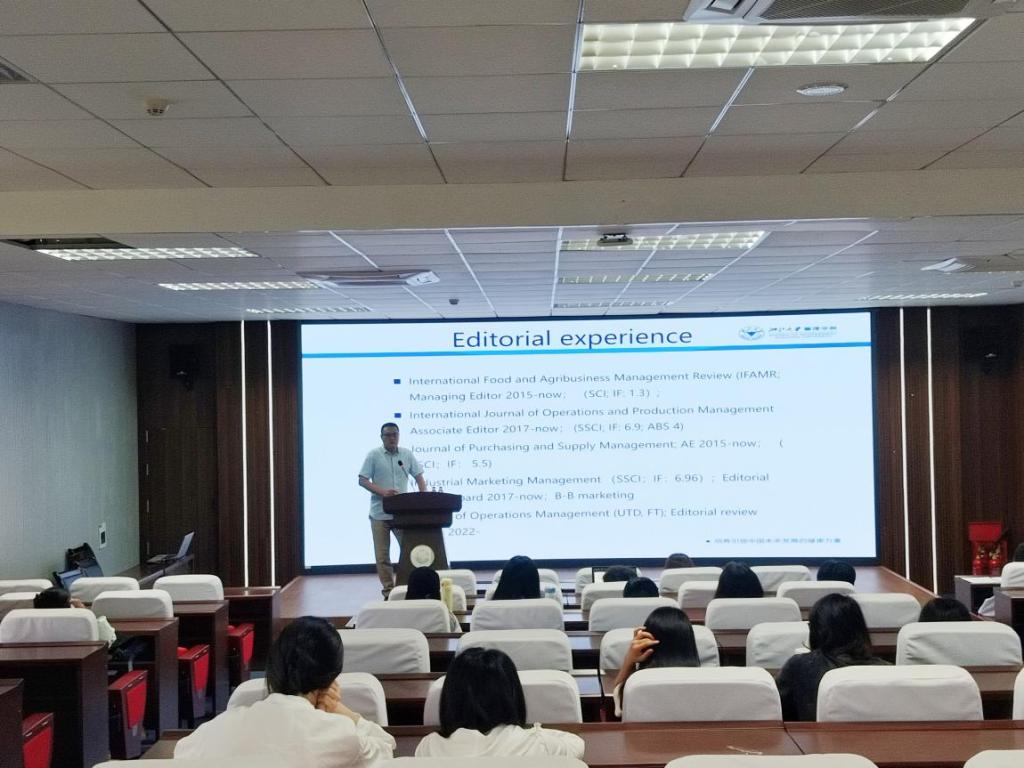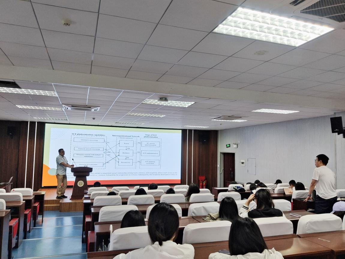 2025年5月6日上午,mansion88明升于求是楼517报告厅举办学术讲座,主题为“从平台化到生态化:第三方供应链金融平台如何打造生态系统?——跨组织网络视角”。英国约克大学商业与社会学院供应链管理讲座(全职)教授、可持续性与韧性主题总监贾甫教授应邀主讲,学院副院长陈宇科主持,金融专硕教师及2024级全体学硕、金融专硕学生共同参与。