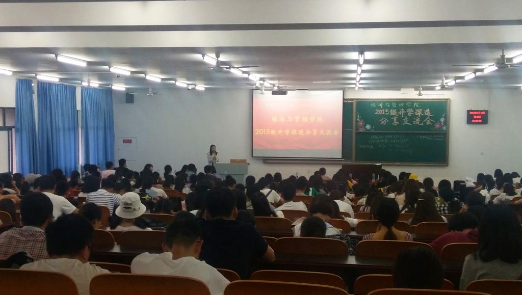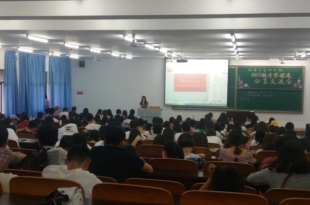 为让我院学生更加了解考研与出国深造,为未来人生定下明确目标,2018年5月13日晚7点半,mansion88明升于特教楼T2507教室开展了2018届毕业生考研经验分享交流会。本次交流会由2018届毕业生代表何欣谊、胡猛、陈梦园、张怡、谯敏主讲,mansion88明升大一至大三学生出席了此次交流会。