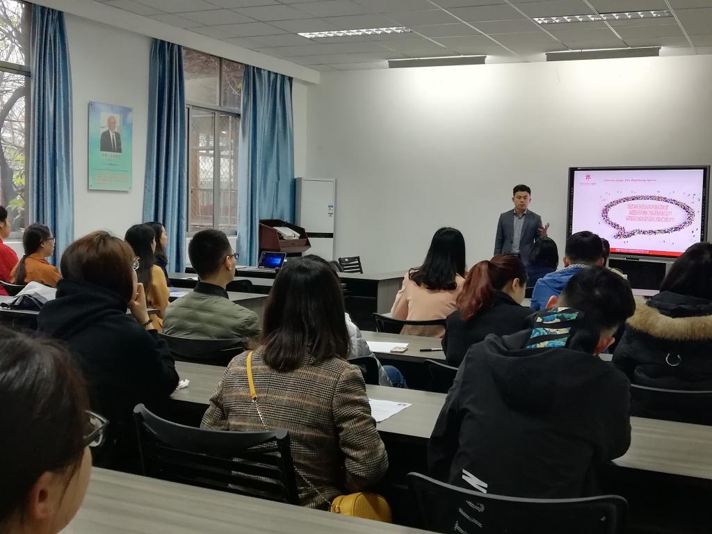 为促进2018届应届毕业生的就业发展,加强对学生的就业指导,2018年3月18日,mansion88明升举行往届优秀毕业生经验分享交流会。已入职四川郎酒销售有限公司并取得优秀业绩的裴振禹学长受邀进行精彩的经验分享演讲,并代表四川郎酒销售有限公司在我校进行招聘。我院2018届毕业生以及部分大三学生到场参加分享会。