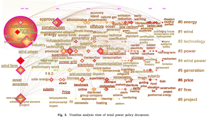 在全球能源转型背景下,本研究针对政策动态适配机制这一关键问题取得突破。研究构建了中国风电政策全周期数据库(1988-2023),创新性地融合政策范式分析与数据可视化技术,系统揭示了我国风电政策体系的四阶段动态演变规律。研究结果表明,风电政策组合呈现阶梯式演进,精准响应不同发展期的产业需求;至今已成功构建“目标分解和评估体系--补贴改革机制--应急干预系统”三位一体的政策框架。基于研究结果和国际实践经验,提出区域梯度平价改革策略、电力市场机制优化、灵活性资源配置等关键转型路径。研究建立的"范式解构→可视化建模→国际经验迁移"方法论框架,为全球可再生能源政策制定提供了可量化、可复制的评估工具,相关结论对推动全球能源转型具有重要参考价值。