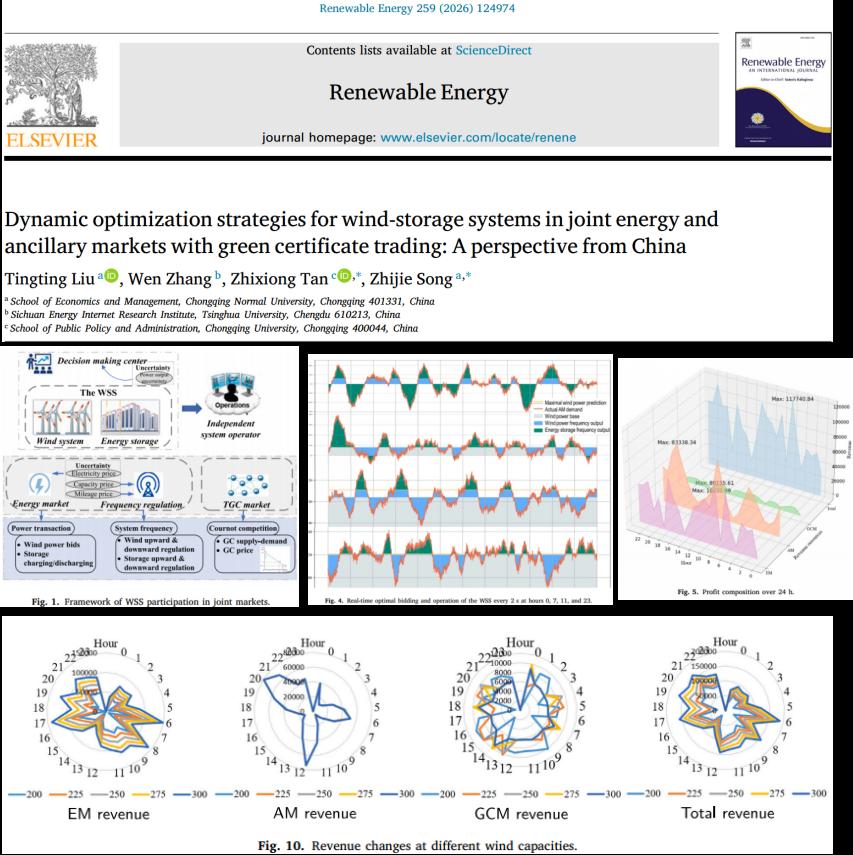 成果一:《Dynamic optimization strategies for wind-storage systems in joint energy and ancillary markets with green certificate trading: A perspective from China》发表于《Renewable Energy》
