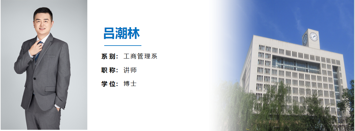 吕潮林,男,汉族,南京航空航天大学管理科学与工程专业博士,讲师。主要研究方向:双元学习和企业数字创新。近五年在《系统管理学报》、《研究与发展管理》、《科研管理》、《科学学研究》、《Journal of Innovation & Knowledge》(相关论文被评为ESI Economics & Business 领域Top Paper 和 Highly Cited Paper)、《Corporate Social Responsibility and Environmental Management》、《Leadership & Organization Development Journal》等权威SCI、SSCI、CSSCI期刊上发表学术论文十余篇。参与多项省部级课题。讲授课程《产业组织理论》。