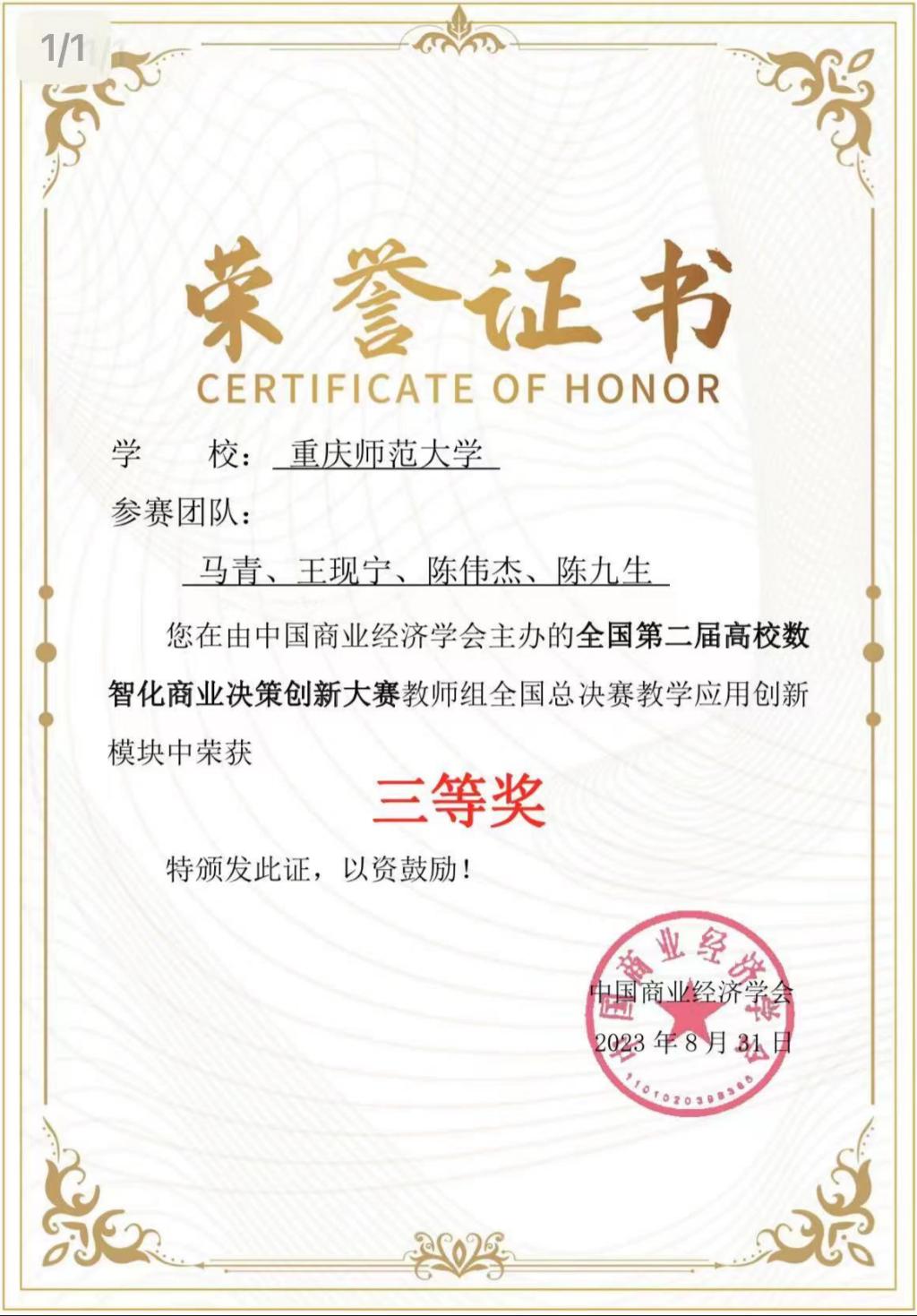 我院教师马青、王现宁、陈伟杰、陈九生四位博士组团提交作品《数智化视阈下<“移动”市场营销>课程教学改革探索》参加比赛,最终获教师组全国总决赛教学应用创新模块三等奖。作品基于移动端(手机、平板等)与当下最新自媒体平台相结合,围绕数智化技术作为教学工具和手段在教学中的运用创新进行教学设计,充分体现了数智化技术在教学环节和教学改革中的深度融合。