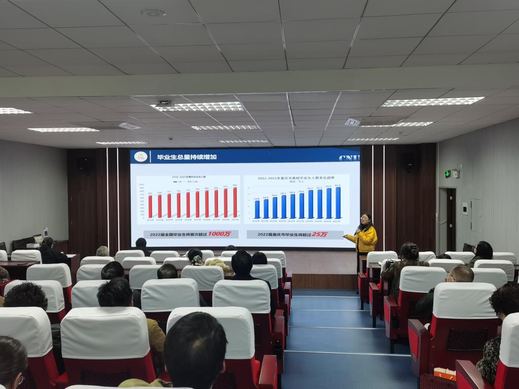 此次会议主要从毕业生数量变化、疫情持续影响、政策性岗位有限、“双减”政策冲击、“内卷”思潮严重、非师范类就业压力增加这六个方面全面分析了当下复杂严峻的大学生就业形势,并对我院全体教职工进行了工作部署。