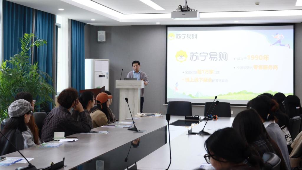 在宣讲会上,郑川经理详细介绍了苏宁易购的发展历程、企业文化以及其针对应届生推出的“1200工程”,并分享了部分往届优秀毕业生在苏宁易购的成功案例。此外,郑经理还阐明了公司内部的职业晋升体系、合作项目规划以及对应聘者的基本要求等内容,使学生们对未来的职场生涯有了更加清晰地认识。