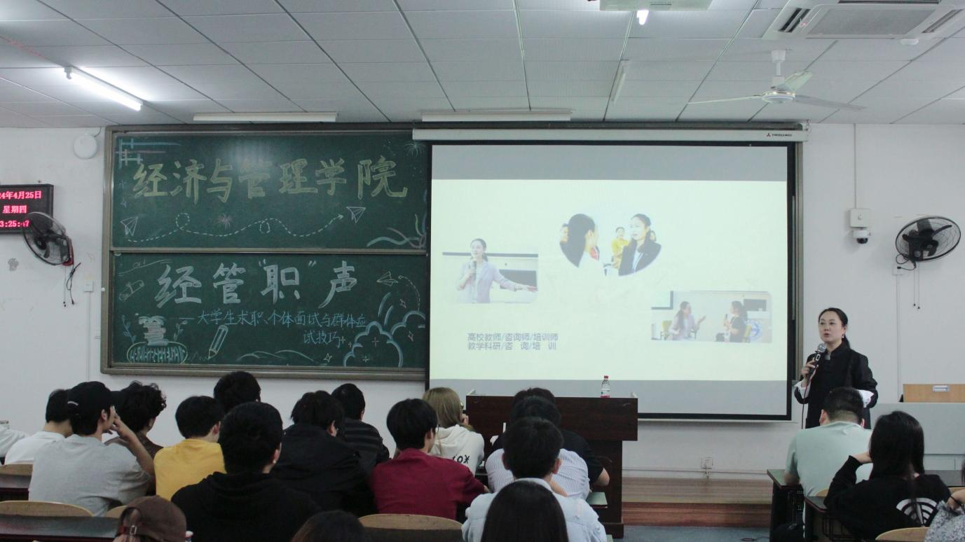 为进一步加强同学们求职面试能力,4月25日下午,mansion88明升于砺志楼T2208开展大学生求职个体面试与群体面试应试技巧培训会,学院党委书记钟敏担任主讲人,2021级同学参与学习。