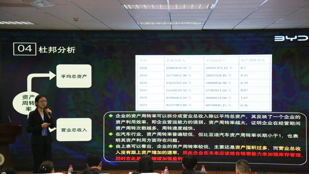 决赛现场,选手按事先抽签顺序对内容进行 10 分钟陈述,并完成评委 5 分钟的问答。选手们通 过对企业财务数据采集、挖掘、清晰,借助财务报表深入分析企业财务状况、风险,给出业务发展 建议,展现了扎实的财务专业知识、娴熟的数据处理技能、较强的问题解析能力。