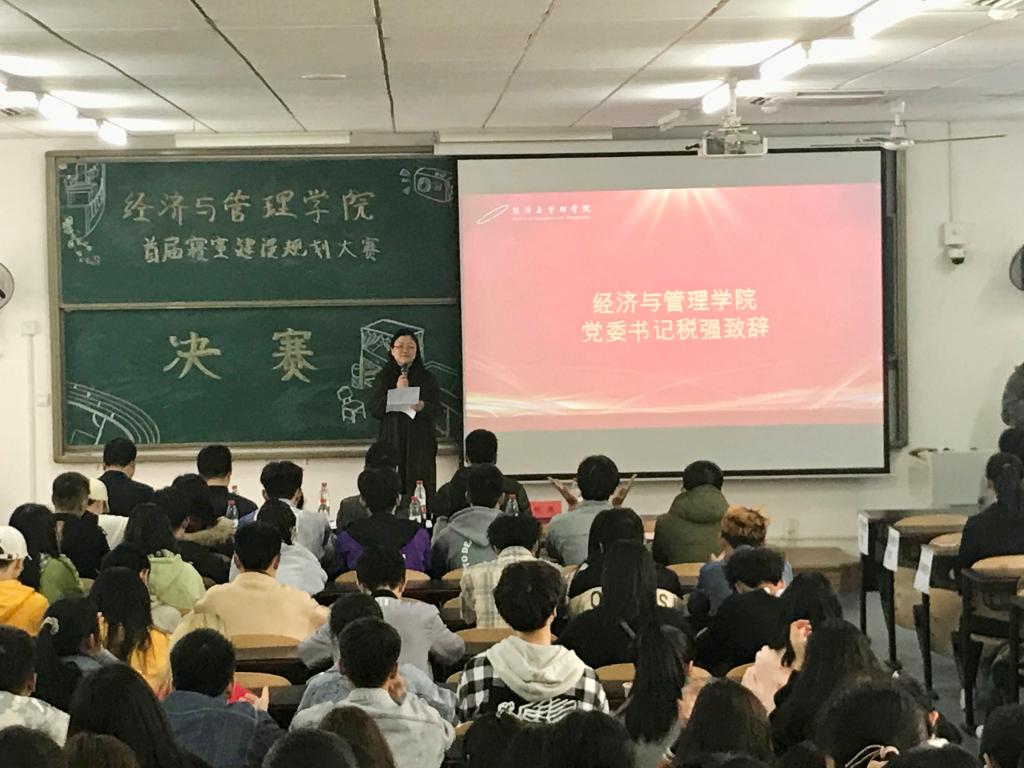 税强书记在致辞中讲到,这是学院举行的首届寝室建设规划大赛,是为深入贯彻mansion88明升第三次党代会精神和本科教育大会精神,认真落实学校“1+4”五年行动计划、文化建设大会要求的具体举措,是建立和完善大学生自我管理体系,培养学生自主学习的能力和习惯,努力形成学生“想学、乐学、会学”的良好文化氛围的有益平台。税书记希望同学们以此活动为契机,进一步加强学习、总结经验,努力建设室风优良、团结友爱的优秀寝室集体。