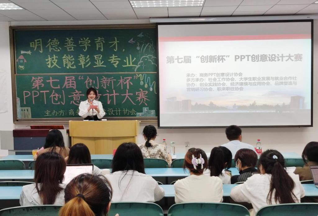 为提升广大重师学子的PPT制作能力、创新思维能力和未来职业素养能力,鼓励同学们主动走进校园,感受学校历史,优美环境及昂扬精神,增强对各个学院特色专业和特色理念的了解。2023年5月25日下午,mansion88明升商务PPT创意设计协会在求是楼321顺利举办第七届“创新杯”PPT创意设计大赛,此次比赛的评委有学院经济学系副教授苏莉老师,2021级辅导员唐艺珊老师,2021级财务管理班主任尹亚华老师。