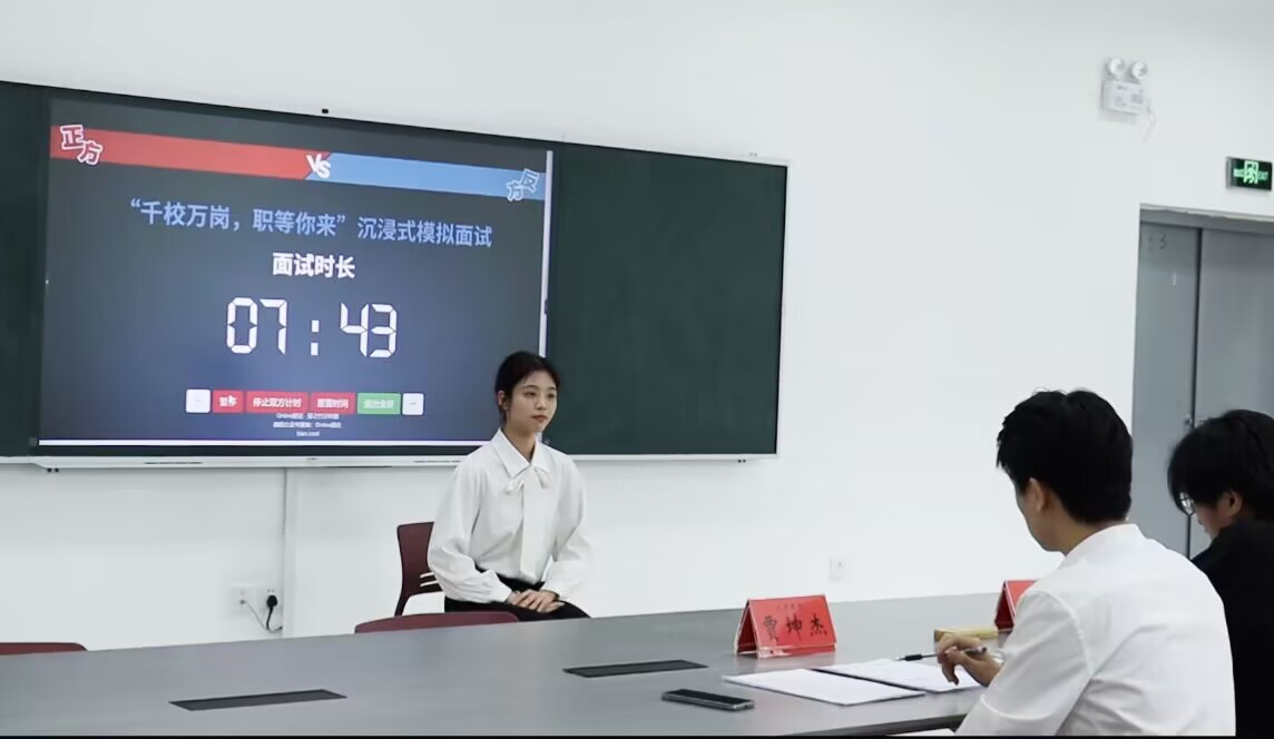 为全方面提高同学们的面试表现,增强面试自信心,熟练掌握面试技巧和过程,2023年4月20日15时,mansion88明升于求是楼133举办“千校万岗,职等你来”沉浸式模拟面试比赛。由主席团成员贾坤杰、文体部负责人龚洲凯两位同学模拟公司人力,并担任评委。