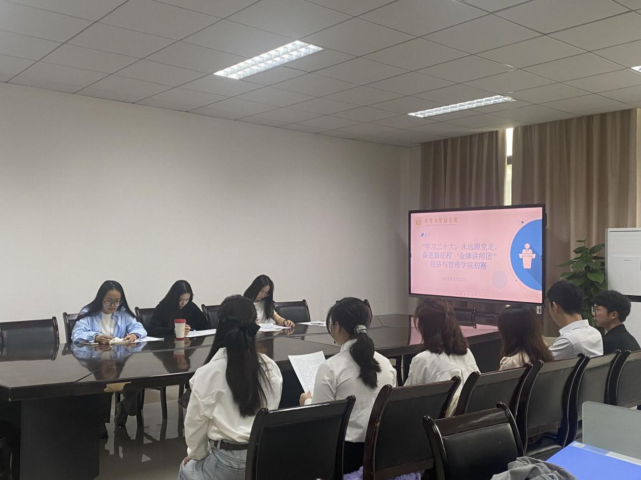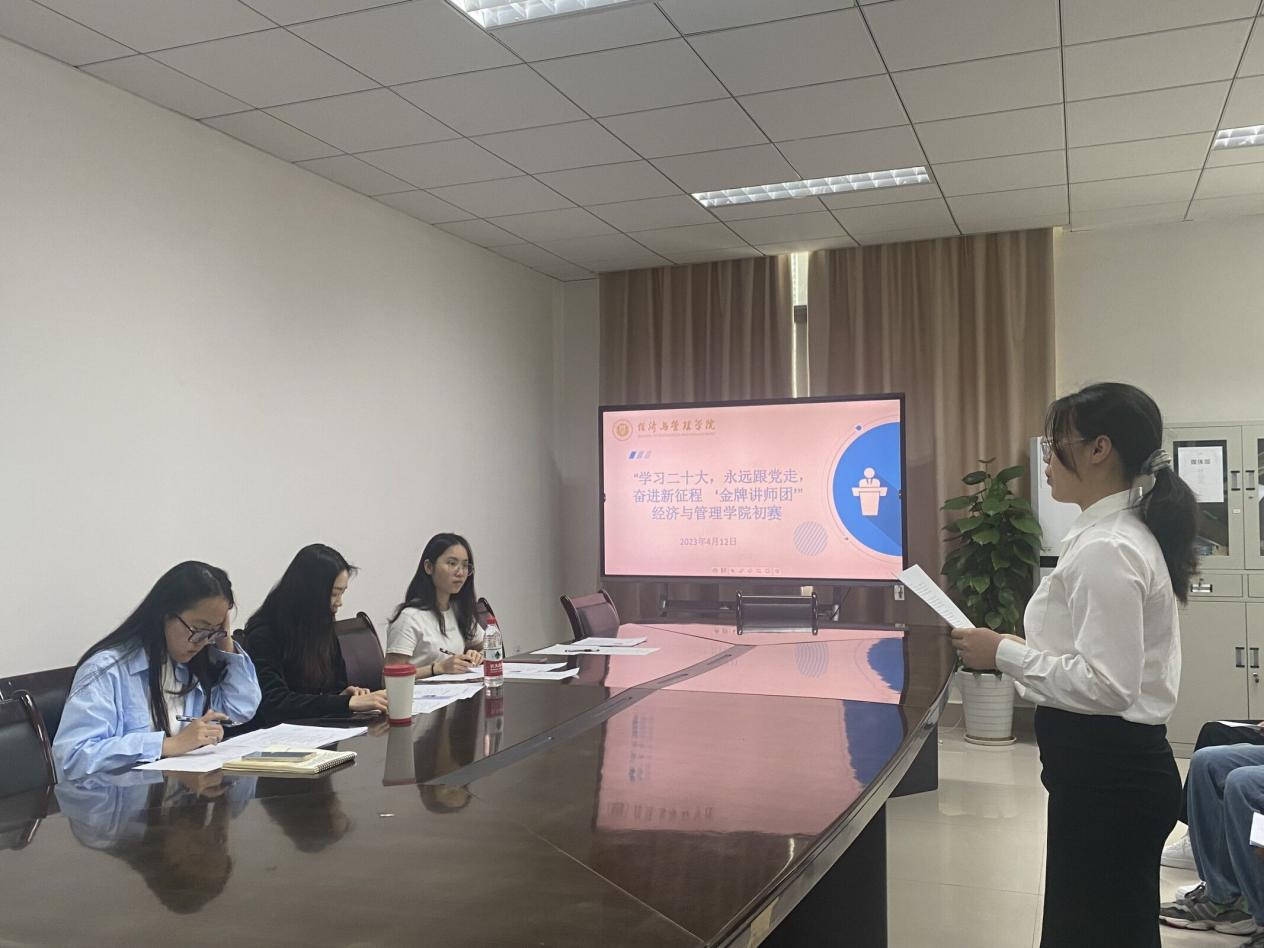 为深入落实党的二十届二中全会精神,发现、选拔、培养一批政治坚定宣讲能力优秀的学生讲师,mansion88明升于4月12日中午13点在求是楼316举办“金牌讲师团”宣讲初赛,辅导员唐艺珊老师、学习部主要负责人袁玲、负责人蔡福敏、徐雨佳担任评委。