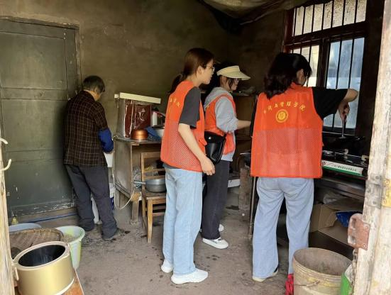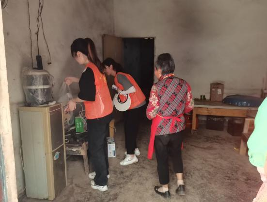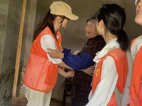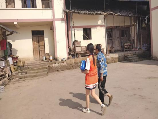 情系老人冷暖,真心慰问关怀。志愿者们分成两队分别前往建新村便民服务中心和六七汇村走访慰问村民。志愿者们在村主任王应全的带领下,分别前往老人家中,为他们送去牛奶等物品,并围坐在老人身边嘘寒问暖,了解老人的生活日常,关心他们的身体情况并陪同老人聊天解闷,为他们送去精神慰问和心理抚慰,增进与老年人之间的交流与沟通。