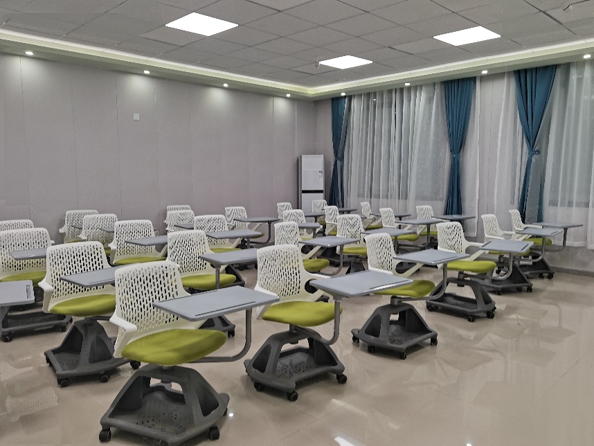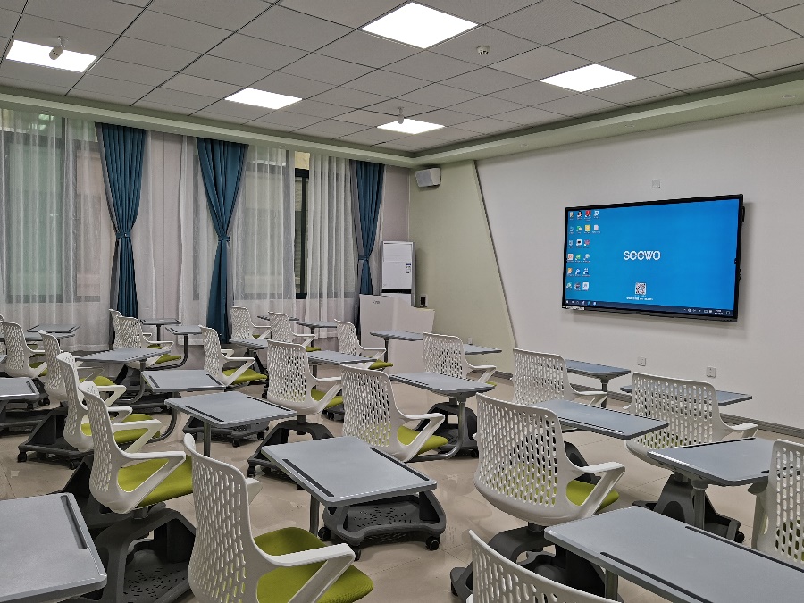 教学平台面积约50+ m2,采用智能信息化管理,可同时容纳30多名学生开展智慧教学。 配有多媒体展示台、投屏终端及智能管理系统,支持多种教学模式,可通过灵动式桌椅,实现学习形态的布局变化,便于开展快捷的分组讨论、学习展示与团队创建。